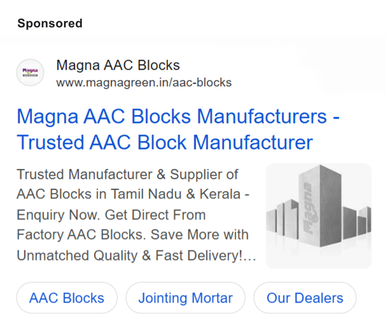 We started by creating a professional corporate website that showcased Magna's state-of-the-art 1,75,000 sq. ft. facility, product range, and commitment to quality. The website established credibility and served as lead magnet for their premium construction solutions.
